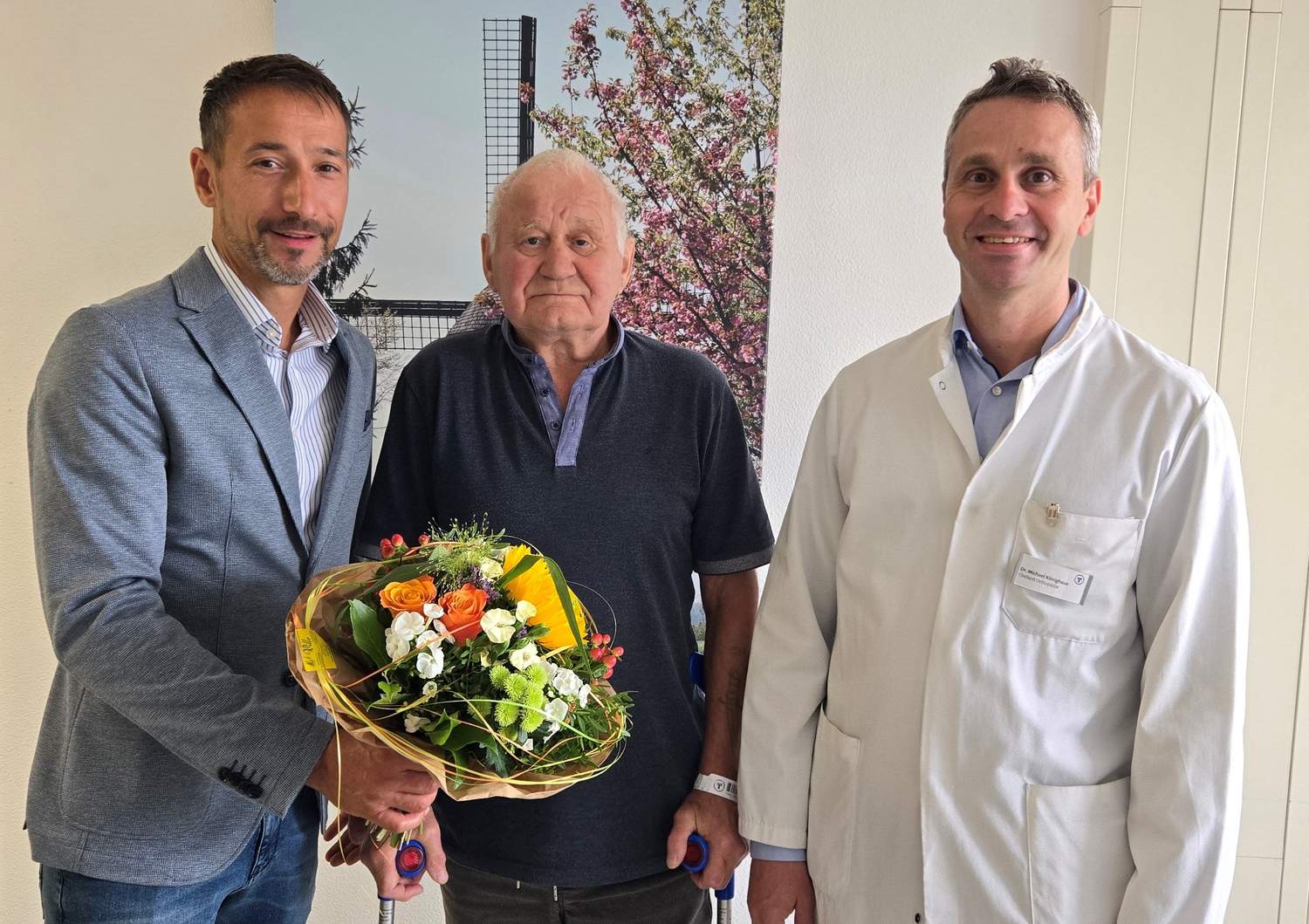 Der erste Ahlener Patient Sergej Wolochow hat in Beckum eine Prothese bekommen, die sein durch Arthrose verschlissenes Kniegelenk ersetzt. Schon nach kürzester Zeit konnte er schmerzfrei gehen: „Ich danke Dr. Krohn und Dr. Frank! Jetzt ist alles gut!“ Bereits nach vier Tagen wurde er entlassen und konnte mit nur einem Tag Versatz in der Reha Bad Hamm weiterbehandelt werden. „Unsere Patienten und wir profitieren von der engen Zusammenarbeit mit der Reha Bad Hamm, weil wir nahtlos eine optimale rehabilitative Behandlung für unsere Patienten bekommen“, sagt Dr. Krohn.