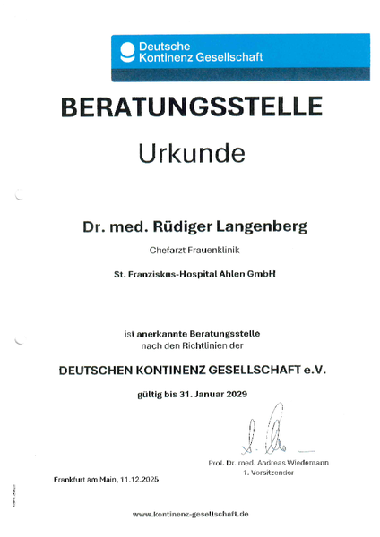 Leitung des Kontinenz- und Beckenbodenzentrums Ahlen-Beckum